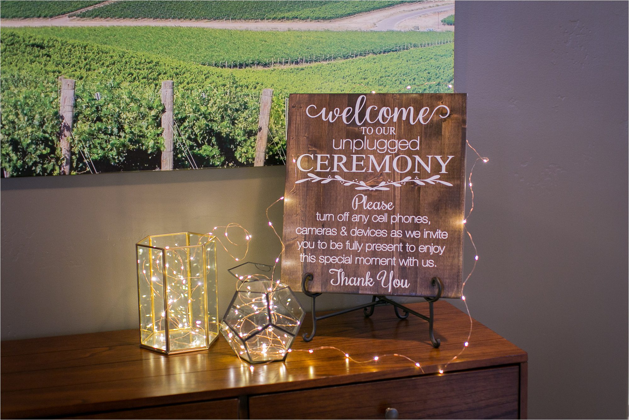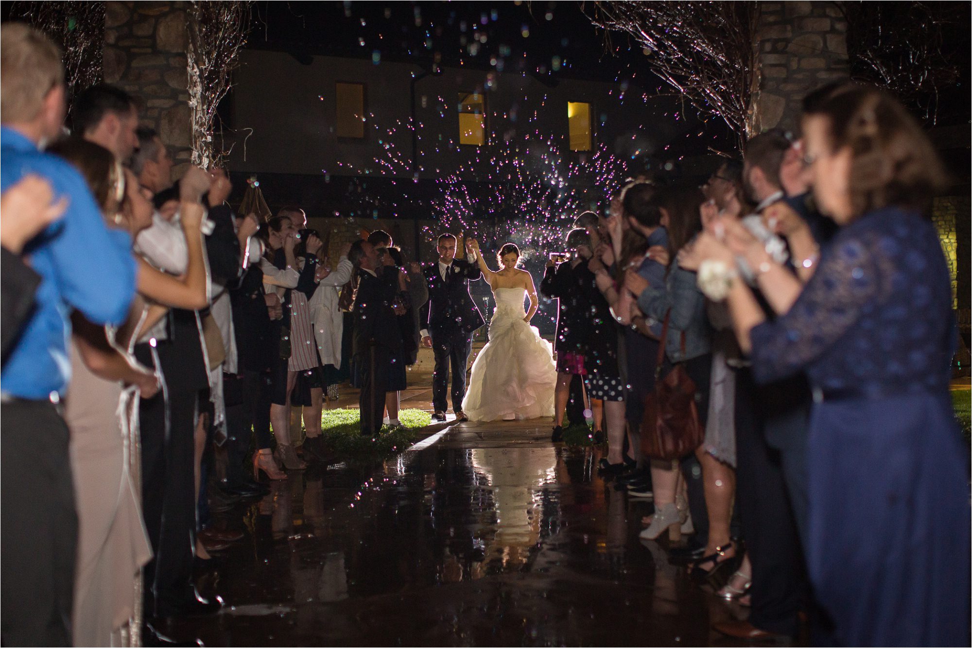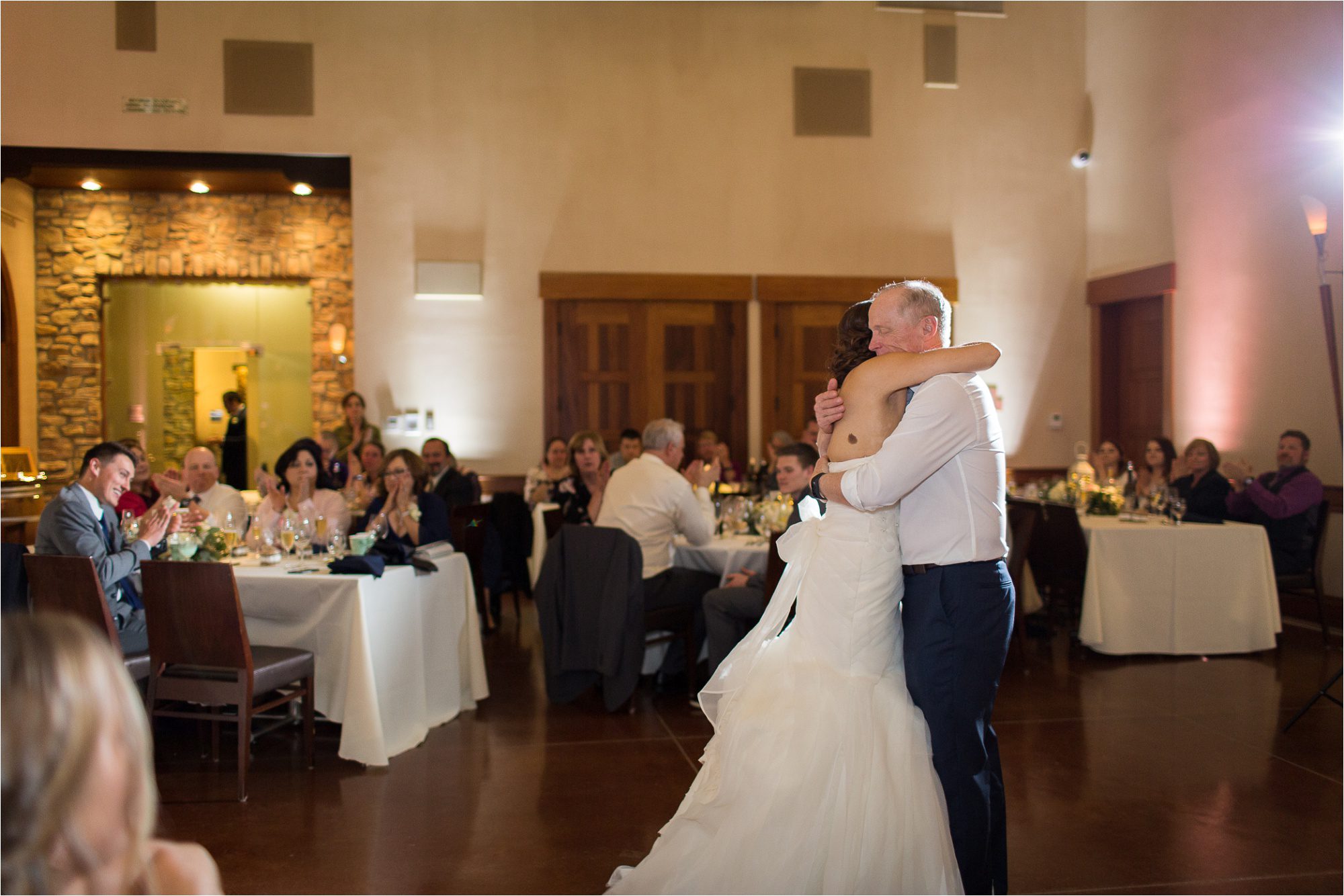 Next, we headed over to the wedding venue – Vina Robles Vineyards and Winery, this was our first visit to this particular winery and let’s just say, it didn’t disappoint! With the rainy weather, Jeremy and Alyssa decided to move their ceremony indoors but it was absolutely beautiful inside with a huge window, letting in lots of natural light.  They shared personal vows with each other and then we headed outside to capture just a few more couple photos of the two of them before their grand reception entrance.  Even the reception hall was stunning with flowers, family, and friends everywhere. 🙂  We ended the night with Don’t Stop Believin’ by Journey before we went outside to send off Jeremy and Alyssa with a receiving line.